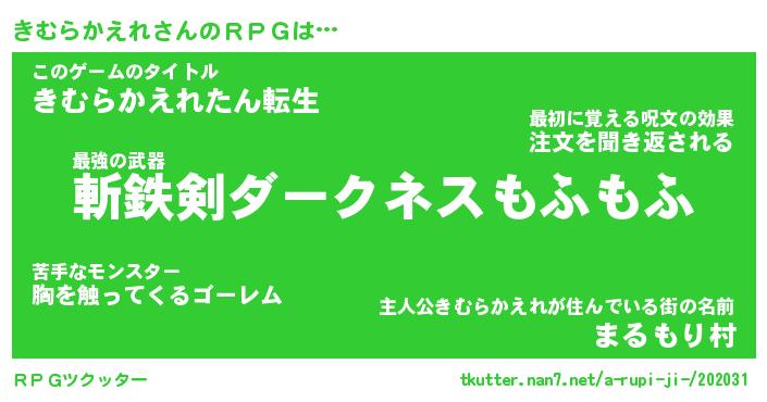 | 男性向けラノベタイトル風あだ名 | 『きむらかえれの憂鬱』 |