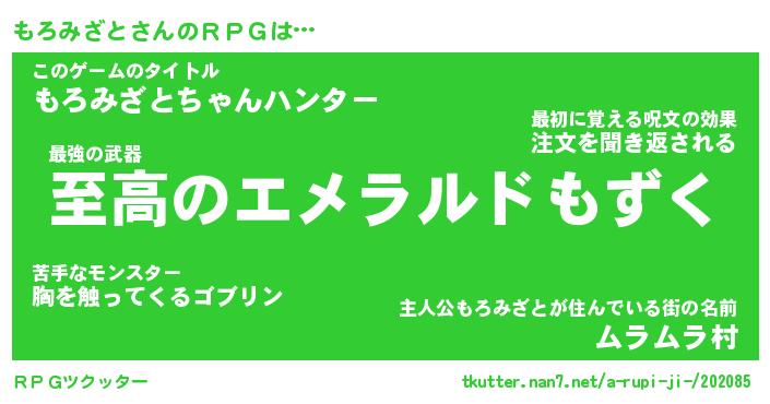 | ファンタジー風あだ名 | 『モロフェル』『エターナルモロミザトー』 |