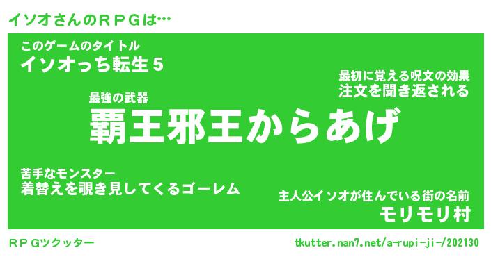 | 男性向けラノベタイトル風あだ名 | 『イソオアートオンライン』 |