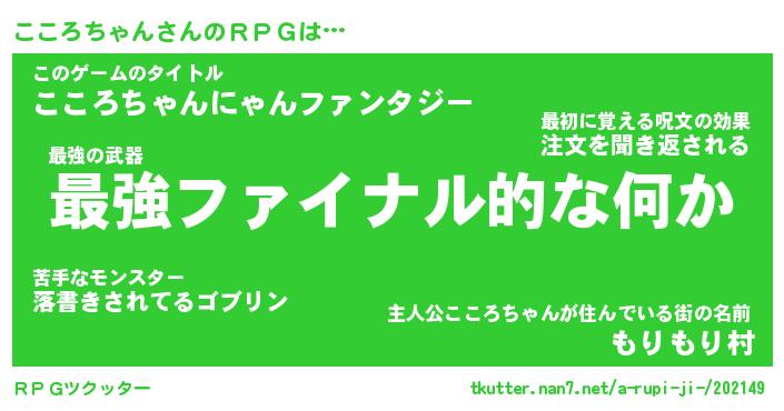 | 男性向けラノベタイトル風あだ名 | 『ココロチャンアートオンライン』 |