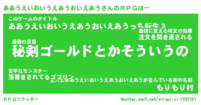 | 伝説のあだ名 | 『伝説の傭兵ああうえいおいうえあうおいえあう』 |