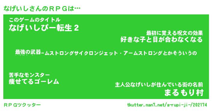 | 男性向けラノベタイトル風あだ名 | 『なげいしの憂鬱』 |