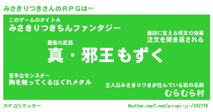 | 男性向けラノベタイトル風あだ名 | 『ミサキリツキアートオンライン』 |