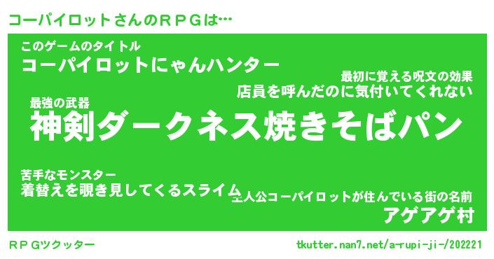 | 料理風あだ名 | 『節約★コーパイロットと油揚げの玉子丼』 |