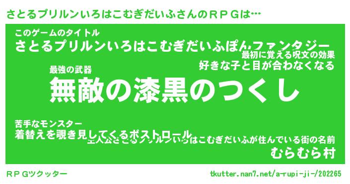 | ツイッター | さとるプリルンいろはこむぎだいふさんのツイッターID『dendenmushi_kun』 |