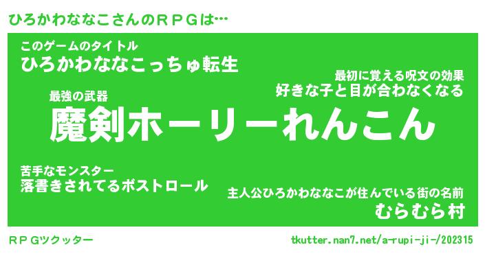 | 男性向けラノベタイトル風あだ名 | 『ひろかわななこの憂鬱』 |