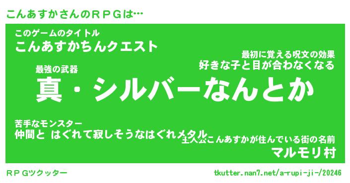 | 胡散臭い通販商品みたいなあだ名 | 『億万長者になれる水晶球…その名も「こんあすか」』 |