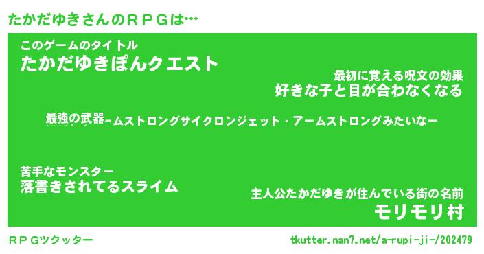 | 男性向けラノベタイトル風あだ名 | 『たかだゆきの憂鬱』 |