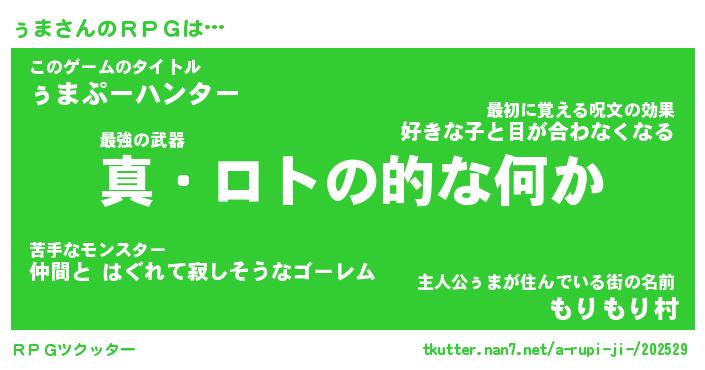 | ファンタジー風あだ名 | 『ゥマフェル』『エターナルゥマー』 |