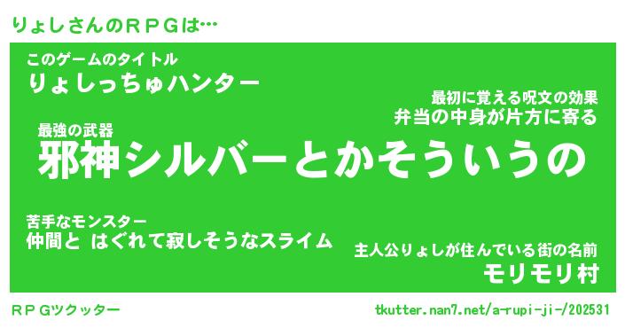 | ファンタジー風あだ名 | 『リョフェル』『エターナルリョシー』 |