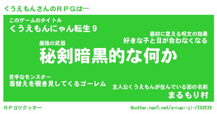 | 男性向けラノベタイトル風あだ名 | 『くうえもんの憂鬱』 |