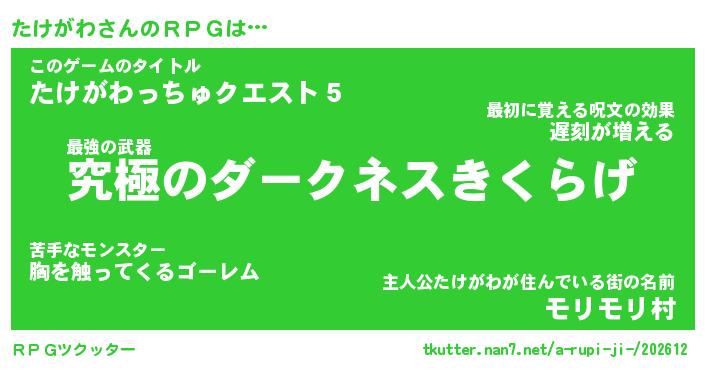 | ファンタジー風あだ名 | 『タケフェル』『エターナルタケガワー』 |