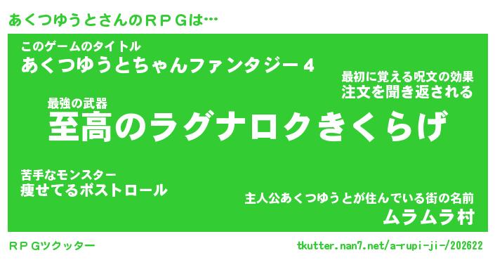 | 男性向けラノベタイトル風あだ名 | 『アクツユウトアートオンライン』 |