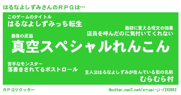 | 伝説のあだ名 | 『封印されし竜騎士はるなよしずみ』 |