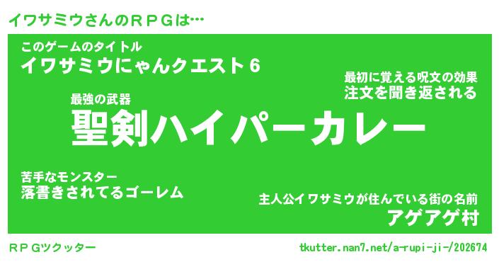 | ファンタジー風あだ名 | 『イワフェル』『エターナルイワサミウー』 |