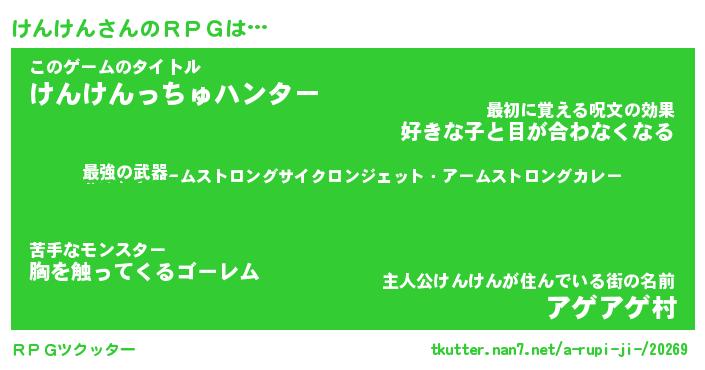 | ヒーロー風カッコイイあだ名 | 『スーパーケンケン』『幻影騎士ケン』 |