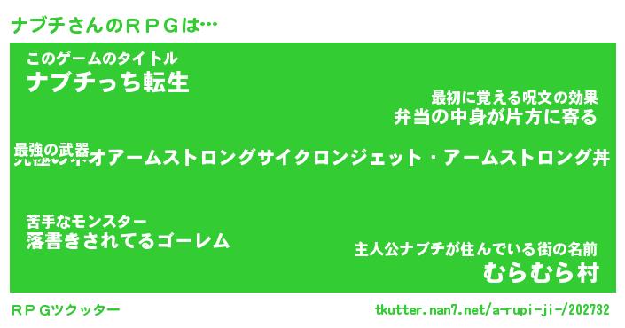 | 男性向けラノベタイトル風あだ名 | 『ナブチアートオンライン』 |