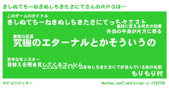 | 料理風あだ名 | 『節約★きしぬてちーねきぬしちきたさにてと油揚げの玉子丼』 |