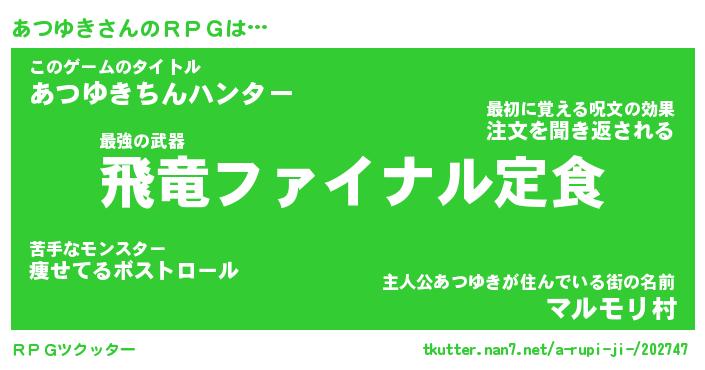 | 男性向けラノベタイトル風あだ名 | 『アツユキアートオンライン』 |