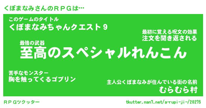 | 料理風あだ名 | 『節約★くぼまなみと油揚げの玉子丼』 |