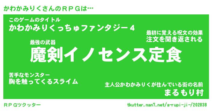 | 胡散臭い通販商品みたいなあだ名 | 『必ず成功する霊験あらたかなお札…その名も「かわかみりく」』 |