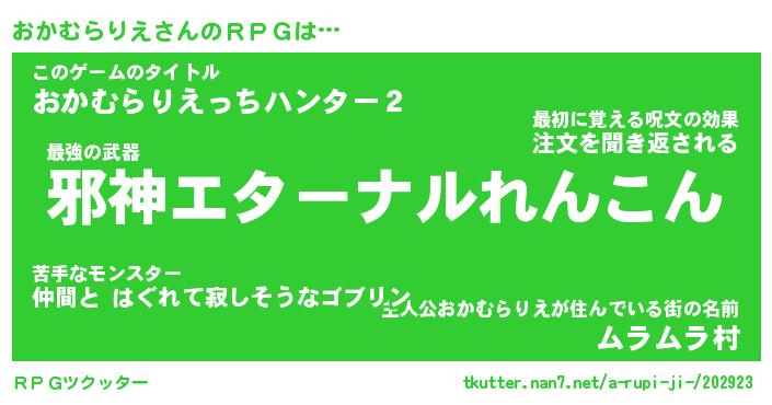 | 伝説のあだ名 | 『封印されし傭兵おかむらりえ』 |