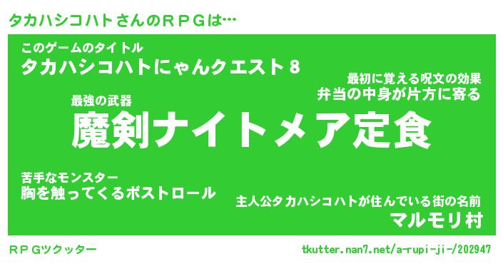 | 胡散臭い通販商品みたいなあだ名 | 『必ず成功する霊験あらたかなお札…その名も「タカハシコハト」』 |