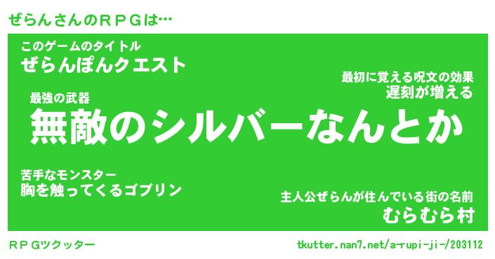| ツイッター | ぜらんさんのツイッターID『namakemono_kun』 |