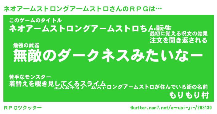 | 男性向けラノベタイトル風あだ名 | 『ネオアームストロングアームストロアートオンライン』 |