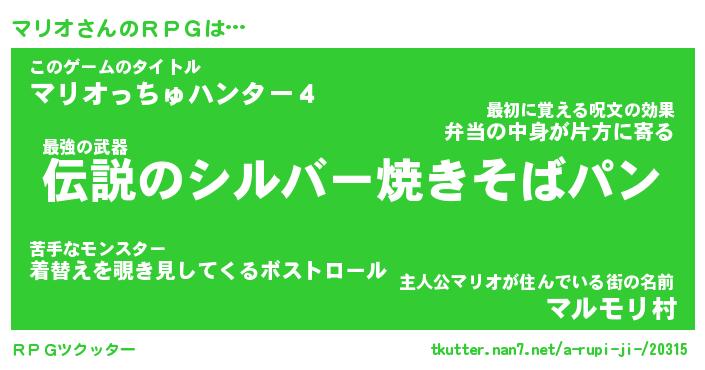 | 女子向けラノベタイトル風あだ名 | 『マリオ姫と円卓の騎士』 |