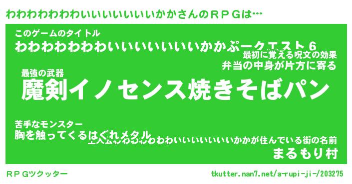 | 胡散臭い通販商品みたいなあだ名 | 『必ず成功する霊験あらたかなお札…その名も「わわわわわわわいいいいいいいかか」』 |