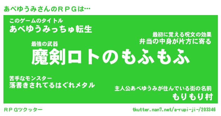 | 胡散臭い通販商品みたいなあだ名 | 『必ず成功するブレスレット…その名も「あべゆうみ」』 |