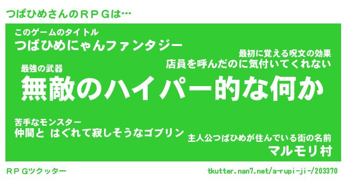 | ファンタジー風あだ名 | 『ツバフェル』『エターナルツバヒメー』 |
