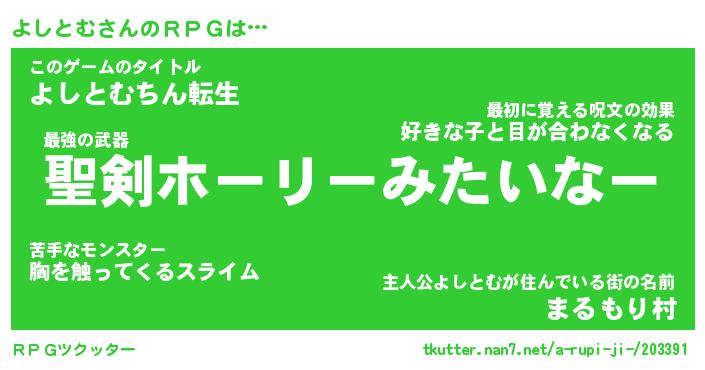 | ファンタジー風あだ名 | 『ヨシフェル』『エターナルヨシトムー』 |