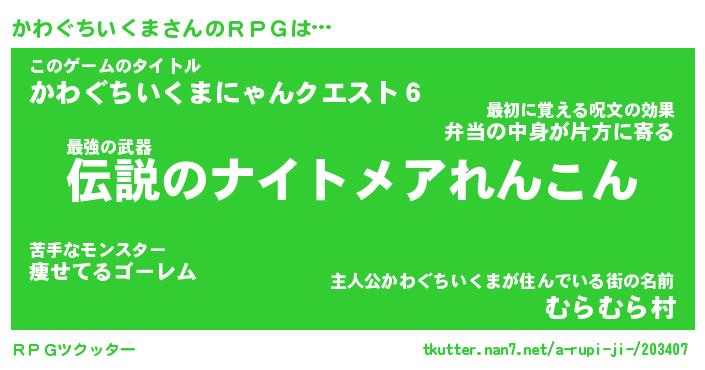| 男性向けラノベタイトル風あだ名 | 『かわぐちいくまの憂鬱』 |