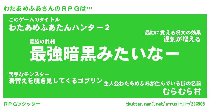 | 欧米人風あだ名 | 『マイケルわたあめふあ』 |