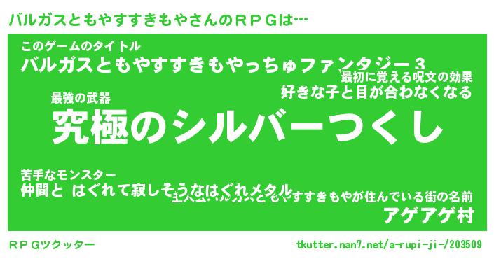 | 伝説のあだ名 | 『不死鳥の傭兵バルガスともやすすきもや』 |