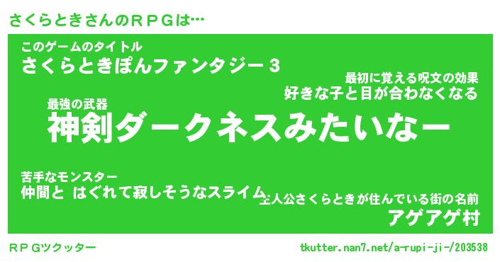 | ファンタジー風あだ名 | 『サクフェル』『エターナルサクラトキー』 |