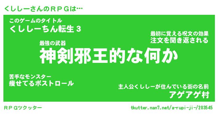| 男性向けラノベタイトル風あだ名 | 『くししーの憂鬱』 |