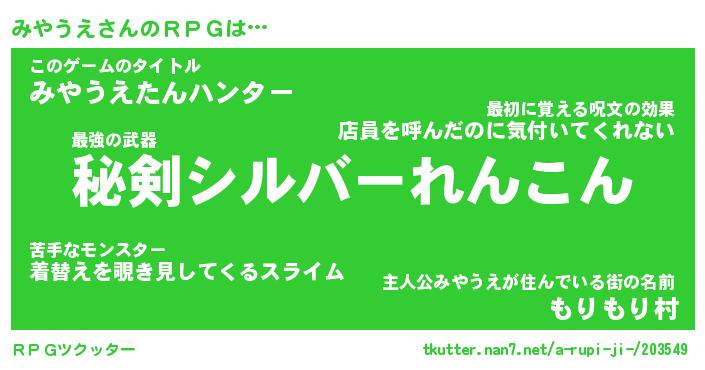 | ヘコむあだ名 | 『みやもー』『つくし』『みやお』 |