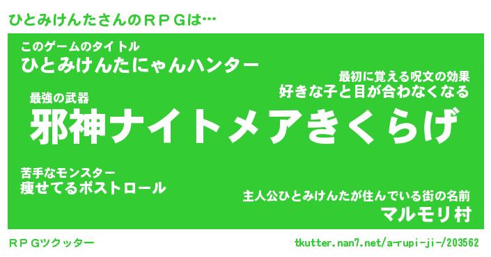 | 男性向けラノベタイトル風あだ名 | 『ヒトミケンタアートオンライン』 |