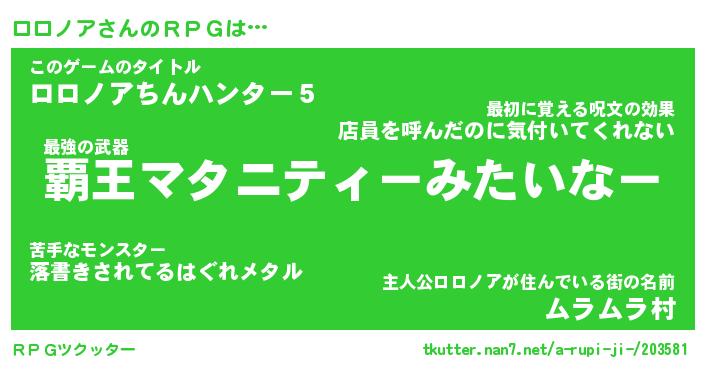 | ファンタジー風あだ名 | 『ロロフェル』『エターナルロロノアー』 |