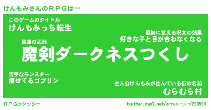 | ファンタジー風あだ名 | 『ケンフェル』『エターナルケンモミー』 |
