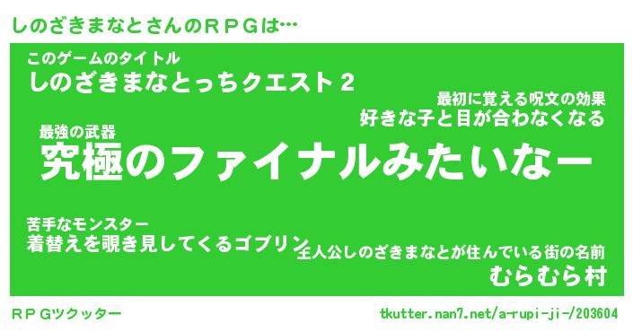 | 男性向けラノベタイトル風あだ名 | 『シノザキマナトアートオンライン』 |
