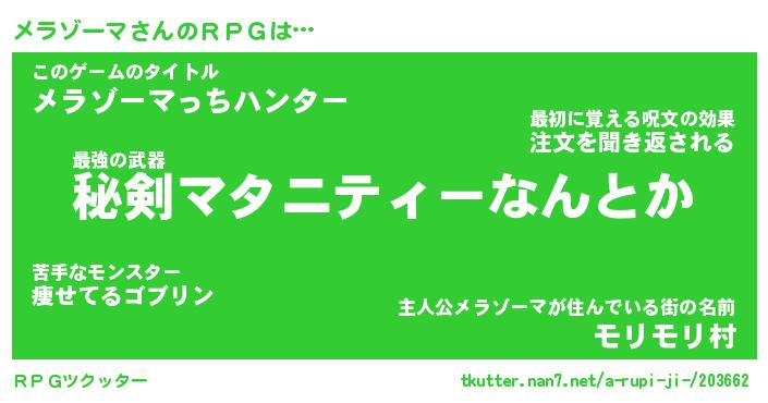 | ヒーロー風カッコイイあだ名 | 『スーパーメラゾーマ』『銀牙騎士メラ』 |