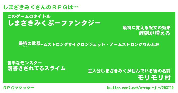 | 胡散臭い通販商品みたいなあだ名 | 『必ず成功するブレスレット…その名も「しまざきみく」』 |
