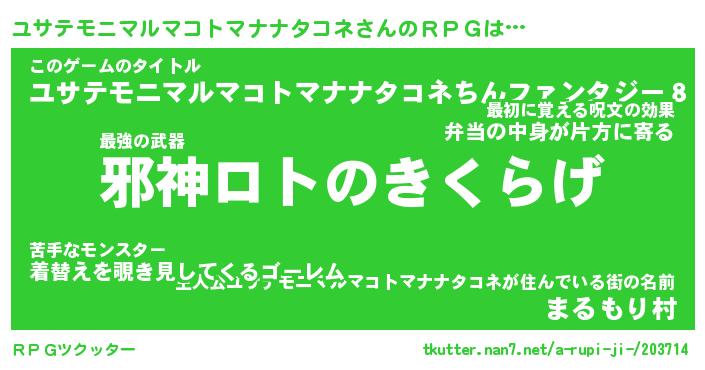 | 男性向けラノベタイトル風あだ名 | 『ユサテモニマルマコトマナナタコネアートオンライン』 |