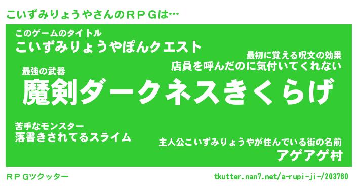 | 男性向けラノベタイトル風あだ名 | 『こいずみりょうやの憂鬱』 |