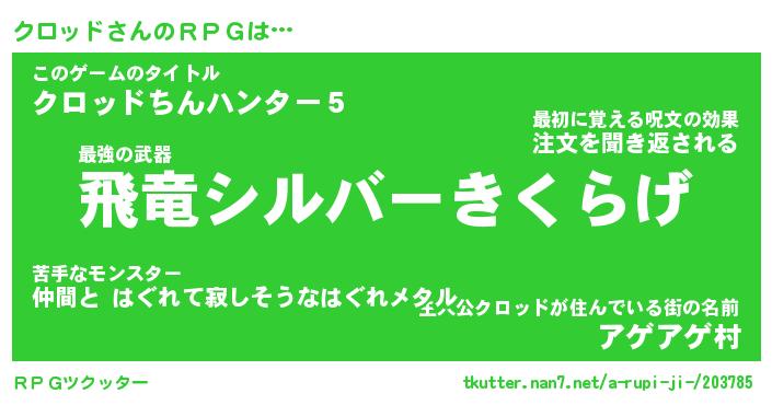 | 意味不明あだ名 | 『ペロリンクロッド』『永久保存クロッド』 |