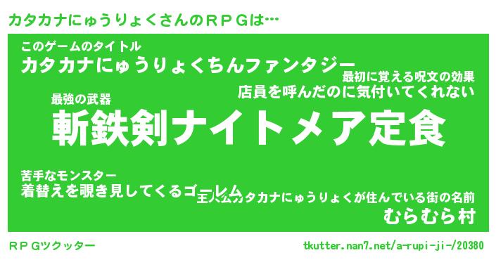 | ツイッター | カタカナにゅうりょくさんのツイッターID『kikurage_nyan』 |